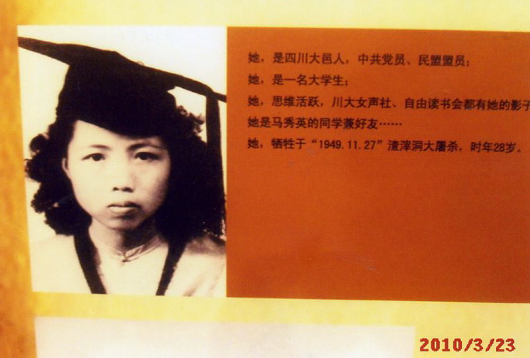 她,牺牲于“1949.11.27”渣滓洞大屠杀,时年28岁。
