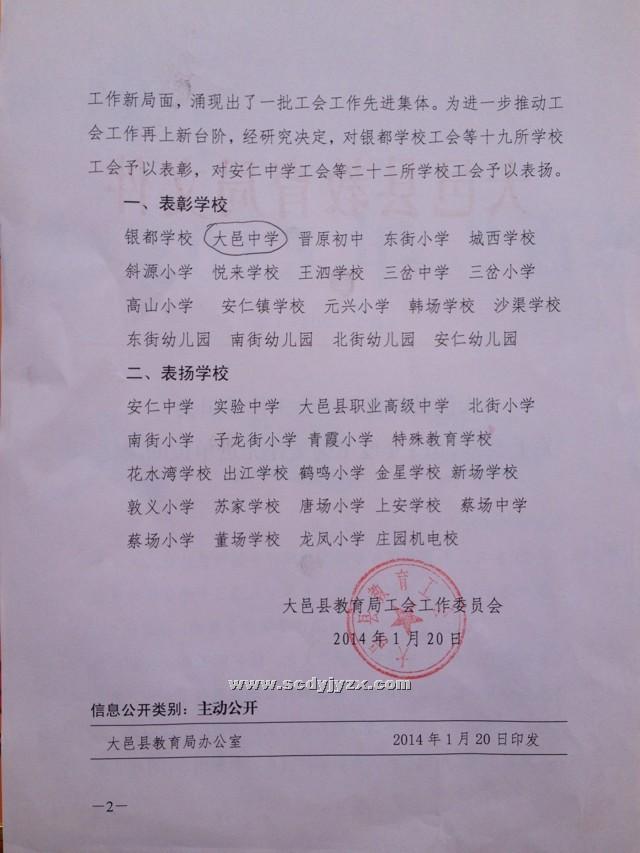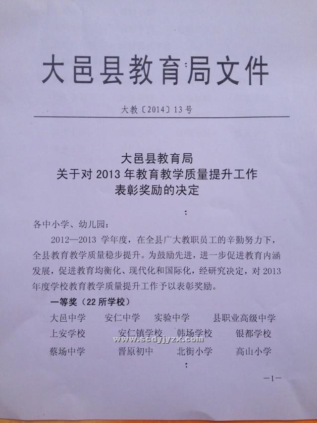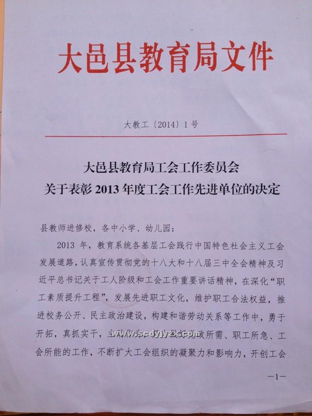 2014年1月学校获奖情况