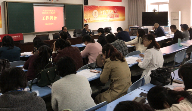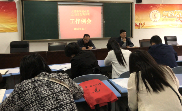 为推进我校101信息化课改工作,10月11日中午1点,大邑中学初中部召开了信息化课改班工作例会,初中部全体101信息化课改班教师参加了此次工作例会。
