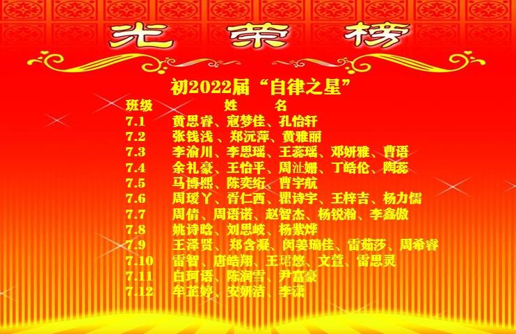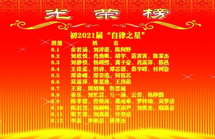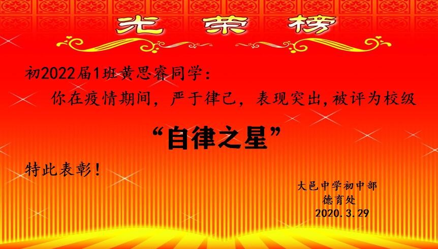 培养自律就是对学生们意志力的考验。特殊时期“停课不停学”,学校不仅有线上学科教学活动,在线主题德育活动也因时制宜地开展。活动期间对表现优异的同学予以肯定,让更多的同学们以“自律之星”为榜样,逐渐养成自律的好习惯,懂得自律会让人战胜一切,更能战胜疫情。