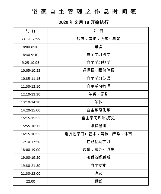宅家学习有规 自主管理有益