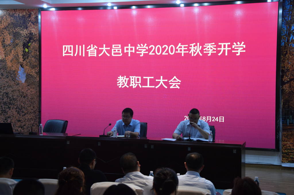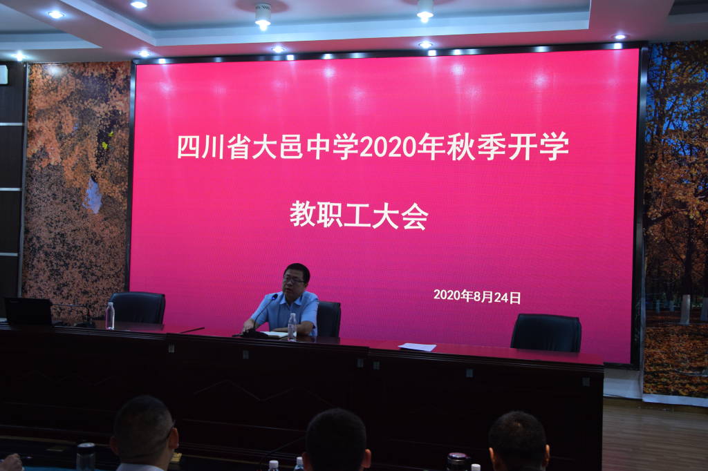 8月24日上午,大邑中学在学术厅召开2020年秋季开学全校教职工大会。会议由校长聂长志主持,大邑县教育局副局长、大邑中学党总支书记顾剑波以及学校各分管副校长对新学期工作作了安排部署。