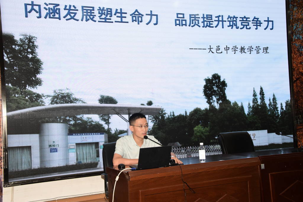 大会最后,由教育局副局长、学校党总支书记顾剑波发言。他对未来三年的工作重点做出了规划。第一,全力争创省一级示范性普通高中;第二,深入推进课堂教学改革;第三,努力成就教师,发展学生;第四,积极探索大邑中学教育集团。对于新学期,他向全体教职工提出了善于学习、团结协作、有责任心、榜样示范、加强师德建设的几点要求。