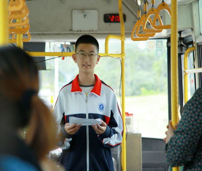 习近平总书记提出:青山绿水,就是金山银山。生态文明建设是国家发展的重要任务。为了能够提高大邑公民的环保意识,同学们精心选材,设计稿件,收集资料和相关数据,他们在公交车上向大邑市民勇敢地发出倡议:保护环境,大家有责,无需壮举,贵在小事!