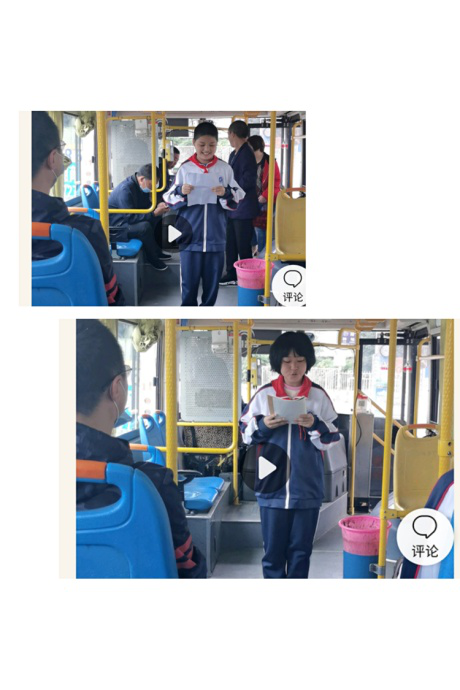 一大早,同学们分成小组,陆续等候在不同方向不同路线的公交车站牌处,自信满满、心潮激荡。他们踏上公交车,以少先队员的名义,以演讲的形式,用自己的实际行动向公交车的司机和乘客们传达自己的对祖国的热爱以及为祖国更加健康、飞速地发展而向市民发出爱国倡议。