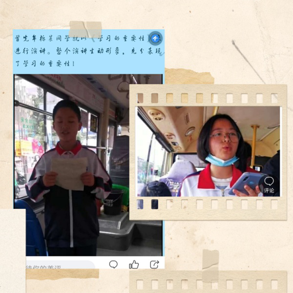 此次演讲活动,全班同学都精心准备演讲稿,自信大方地在公交车上、在陌生人面前进行展示,人人参与,分别按照不同角度、不同内容、不同主题进行演讲,他们的真诚、勇敢和富有感染力的演讲感染了公交车上的乘客,也再次点燃了大家的爱国激情,一瞬间,仿佛大家都置身于国旗之下,阳光伴随着国旗缓缓升起。