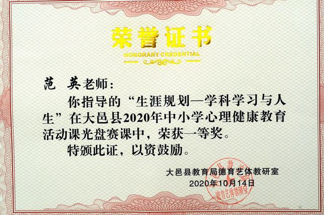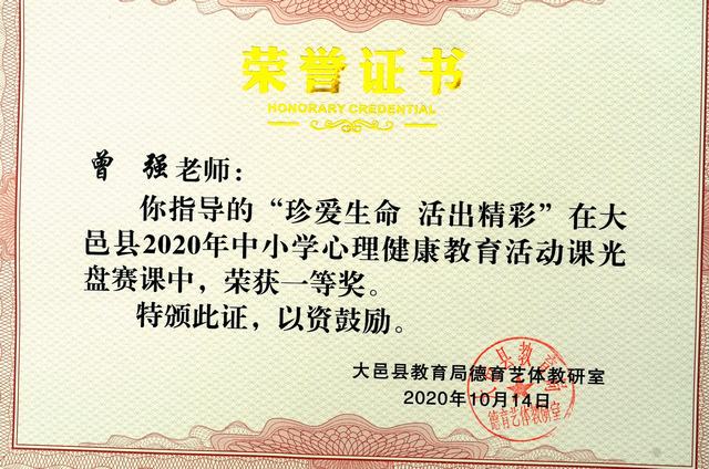 我校教师曾强、范英、唐凤娟荣获2020年心理健康教育活动课光盘赛课县一等奖