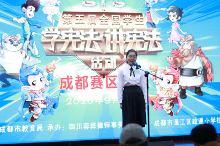 决赛在即,在指导教师的带领下,王怡平同学认真准备,刻苦练习,9月25日,王怡平代表大邑县教育系统参加成都市中小学生第五届“学宪法讲宪法”比赛,以总评95.3的好成绩排名第二!此次比赛分演讲和命题即兴演讲,在和成都各学校选手激烈的角逐中,取得了喜人的成绩!