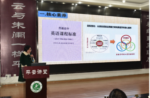 大邑中学李泽南老师做“巧用平台,实施‘三段’教学;精准施策,落实学科核心素养”的交流发言。随着英语课程改革的持续深入,英语学科教学由综合语言运用,能力注重的三维目标转化为重视对学生进行英语学科核心素养的培养。即从语言能力,文化意识和思维品质以及学习能力等四个维度来落实。