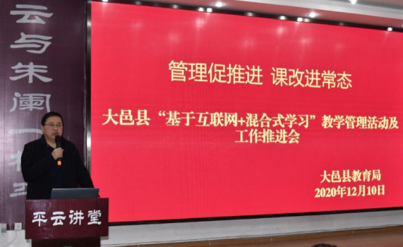为增进学校干部教师对混合式学习的理解,提升学校混合式学习的教学管理水平,促进教学本质和学科本质的回归,混合式学习教学实践走向常态化,进一步推进“基于互联网+混合式学习”的信息化课改工作,2020年12月10日,大邑县教育局在大邑中学开展“互联网+混合式学习”教学管理研讨活动。