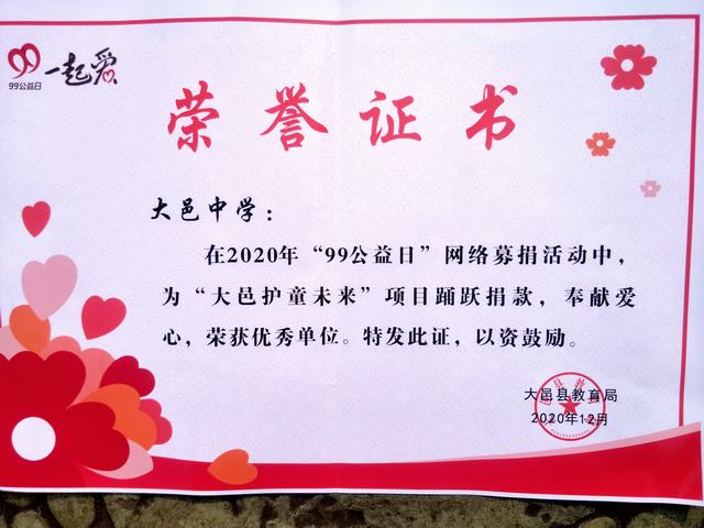 我校在20202年“99公益日”网络募捐活动中荣获优秀单位