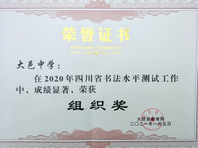 我校在2020年四川省书法水平测试工作中荣获优秀组织奖
