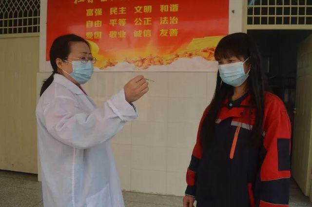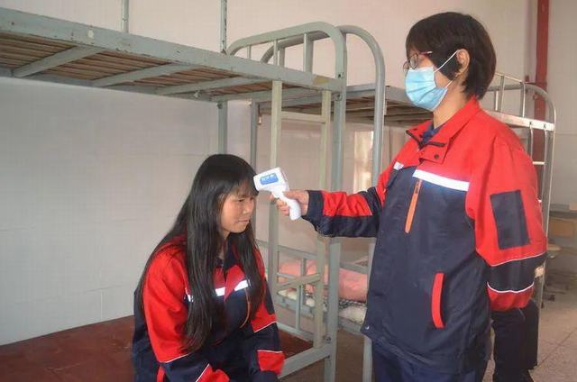 此刻,学生已在宿舍楼前,间隔1米排队,接受宿管员体温检查,有序进入寝室。对体温异常情况复查并登记。午休中各楼层定岗定人,巡视管理。