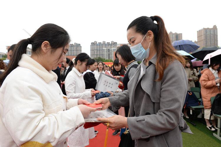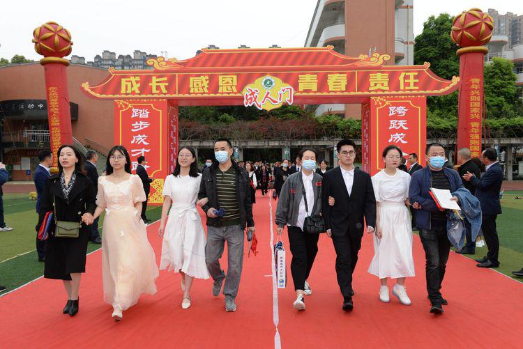 礼成后,学生对父母、师长和祖国行拜礼,以此感恩父母、感恩师长、感恩祖国。父母也为孩子们赠送特殊的成年礼物——《宪法》,宣告孩子们的长大和责任。孩子们也回馈家长,用书信写下铮铮誓言,感恩父母。