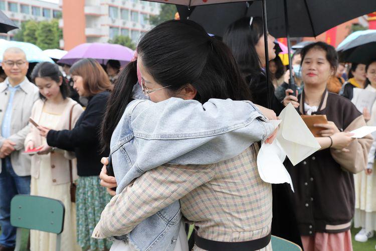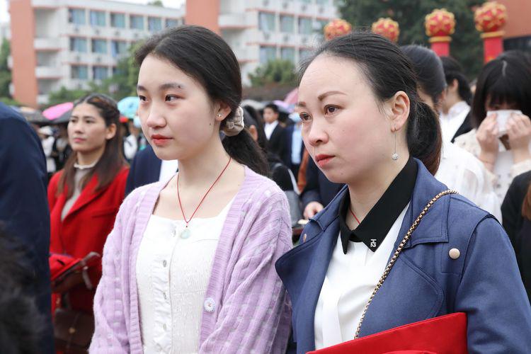 顾书记,聂校长带领学校领导夹道欢迎步入成人门的家长和学子