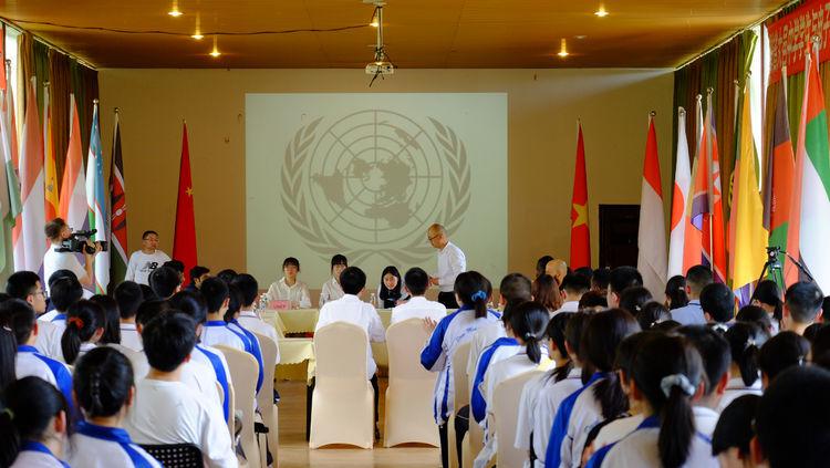 二、劳动融合教育之“模拟联合国” “模拟联合国”精彩瞬间 大邑中学学生与11个国家的留学生探讨全球粮食危机和环境危机解决方案
