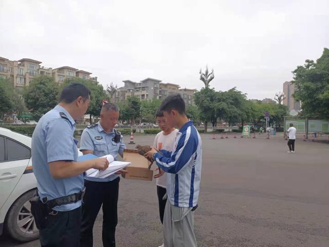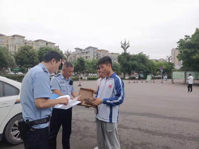 2021年5月23日,高2019级10班学生孙一诚在校园发现受伤稚鸡(国家二级保护动物),立即救助并及时联系民警,林业局现已进行积极救治。