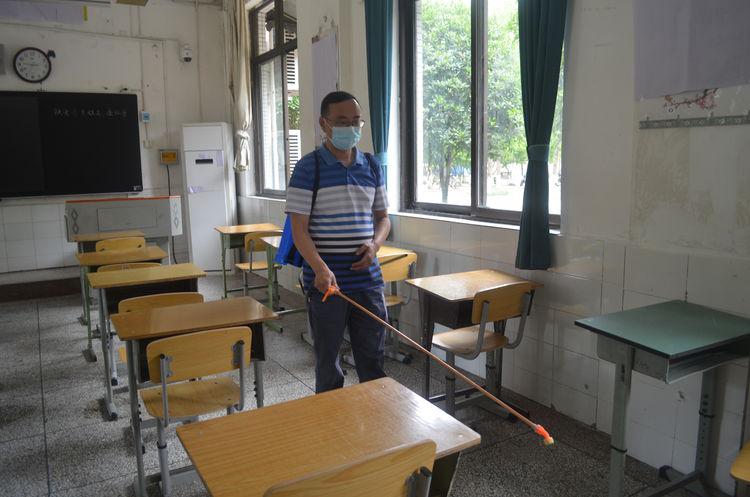 每天考试结束后,学校组织消毒人员清场,定人定岗对考场地面、讲台、门把手、厕所等进行环境全面消杀,并贴上标签;发热考场在卫健、疾控中心指导下,进行全面消杀。
