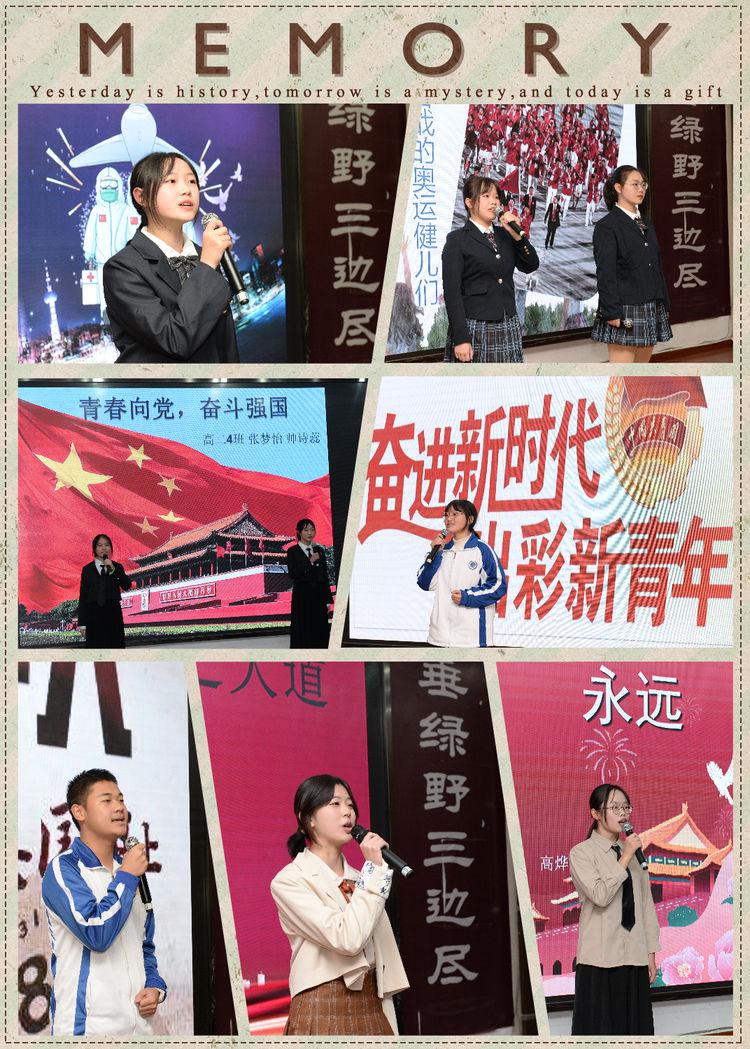 参赛选手来自高一高二年级,他们结合自身的思想和学习生活实际,紧扣主题,讲述自己作为一名新时代高中生的责任心、爱国心、进取心,展现自己顽强拼博,迎难而上、吃苦耐劳等崇高品德。