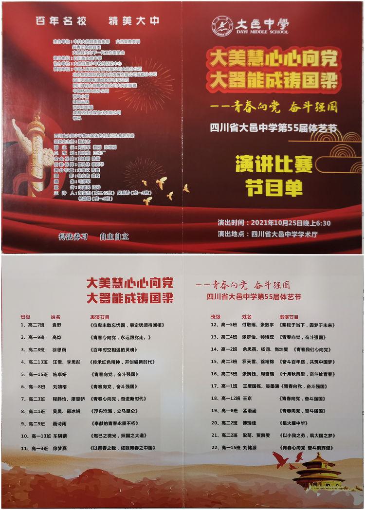 大美慧心心向党 大器能成铸栋梁——四川省大邑中学第55届体艺节·演讲比赛