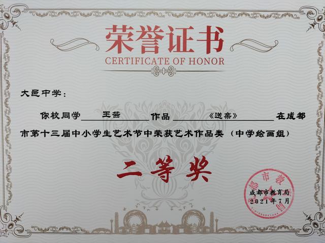 我校学生在成都市第十三届中小学生艺术节中获奖