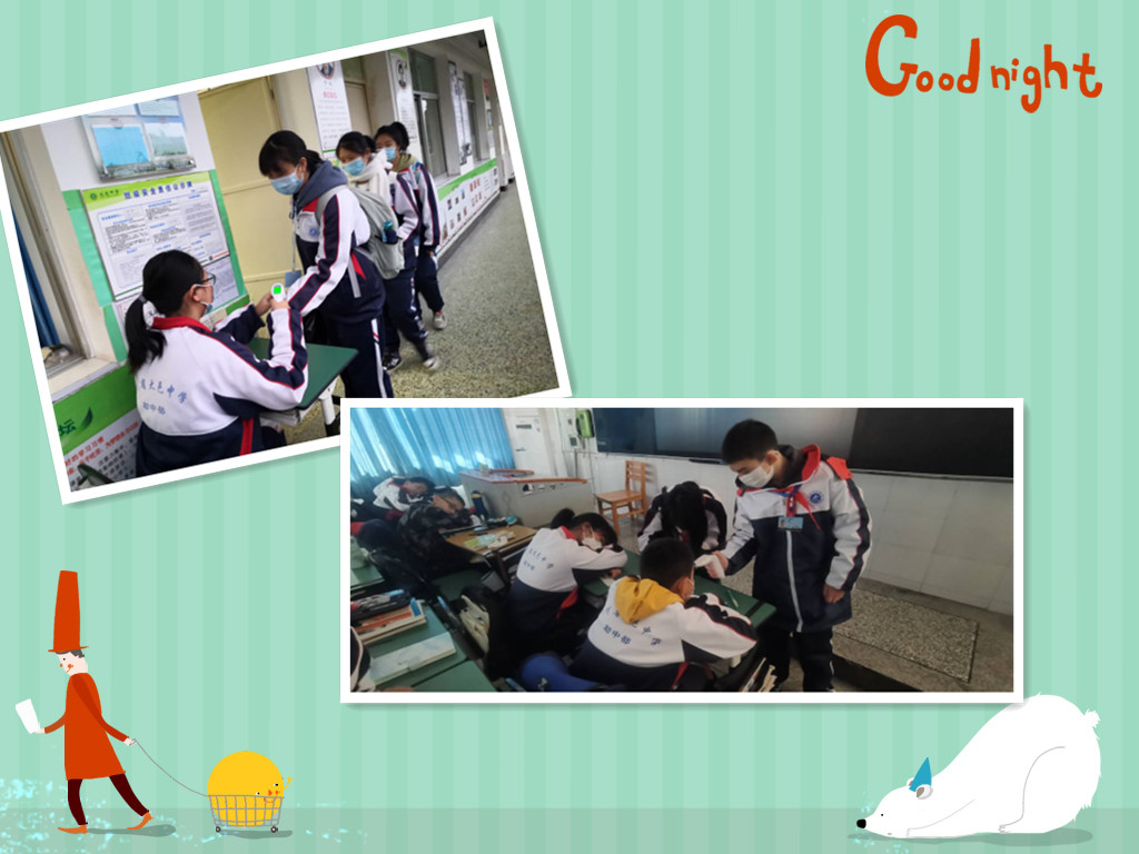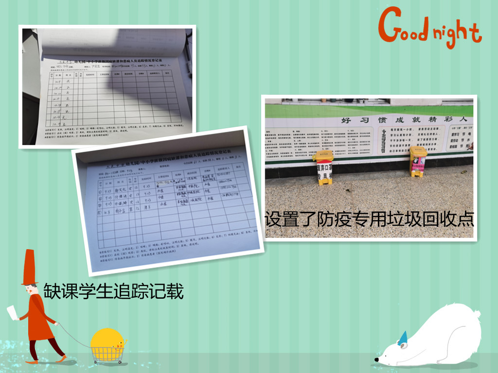4、各班班主任组织学生彻底打扫教室和校园公共区域,坚持每日三查体温、对教室进行杀毒、做好疫情期间因病追踪记录、设置防疫专用垃圾回收点等工作,全校齐心协力、众志成城,一丝不苟做好抗击疫情的相关工作。