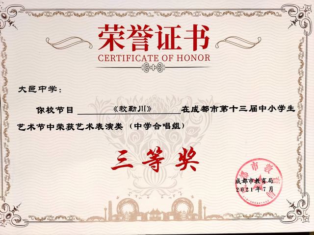 我校节目在成都市第13届中小学生艺术中荣获艺术表演类三等奖