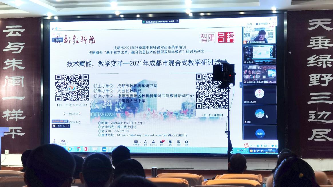 11月25日,在成都市教育科学研究院组织的“技术赋能,教学变革——2021年成都市混合式教学研讨活动”中,刘源工作室学员严文娟以《春望》为研讨课例进行远程网络直播展示。