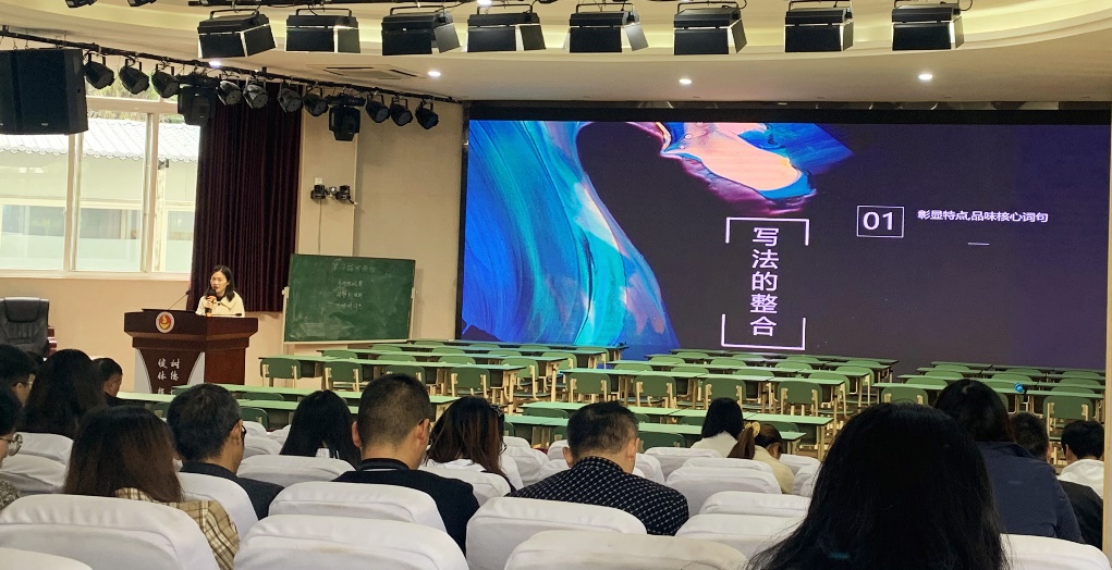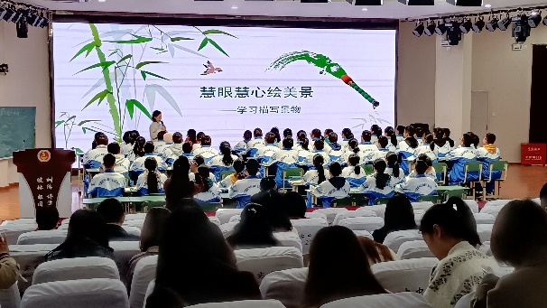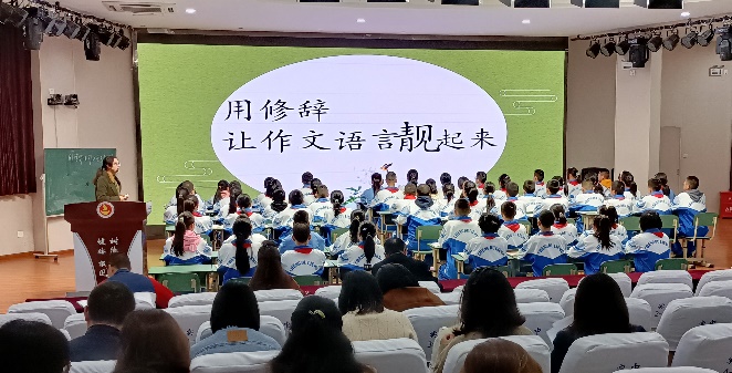 会上,实验中学教师罗金执教七年级作文研究课《用修辞让作文语言靓起来》。她以课文摘抄、人物素描、片段修改等方式,训练学生进行作文语言的修饰美化;刘源工作室成员、大邑中学教师邓茜媛,执教八年级作文研究课《慧眼慧心绘美景——学习景物描写》。她从多角度观察、动静相映衬、巧绘时间态三个角度来指导学生学习景物描写。