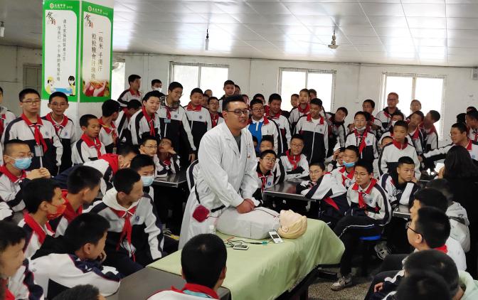 在心肺复苏教学中,成都市第五人民医院的医师们首先向同学们讲解心肺复苏的概念和重要性,随后分步骤进行现场操作示范。讲解、示范后,许多同学积极上前体验。在专家的指导和纠正下,同学们掌握心肺复苏的正确操作方法,学到实用的救护技能。