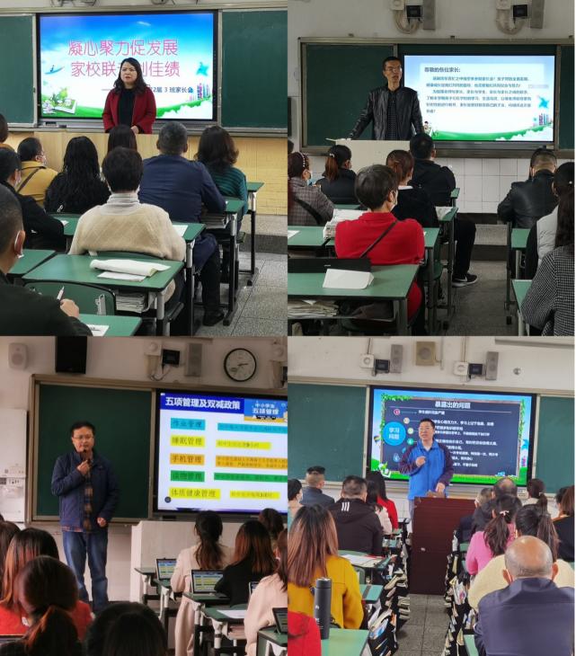 首先,各班主任老师面对面、零距离向家长们解读“五项管理”、“双减”等教育新政;介绍“双减”背景下班级的管理理念和治班策略;分享孩子们在学校的各项活动中的优秀表现;交流班级目前的学习情况;指出初三年级对于孩子一生发展的重要性;并向家长们提出了家庭教育的合理建议;要求家长们能“家校同心”共同见证孩子们的成长和进步;明白“减负”不减教学质量,“减负”不减彼此责任等等。