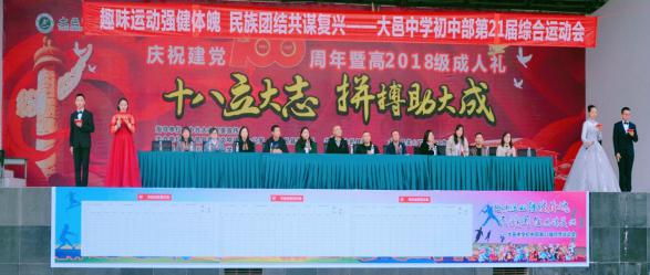 金秋时节,秋高气爽;乐曲高奏,彩旗飘扬。10月28日上午,我校初中部1800余名师生齐聚操场,隆重举行以“趣味运动强健体魄,民族团结共谋复兴”为主题的第21届综合运动会。学生张灿宇、杨轩、周秦灵、肖鲁灏阳主持开幕式。校长聂长志、初中部校长王波、初中部副校长杨成军、曹宇等出席本次活动。