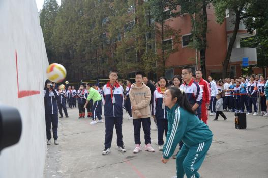 排球对墙垫球比赛,学生们学会与自己较量,不断超越自我。
