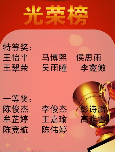 曹义芳老师点评 细腻的文字经过同学们铿锵有力的演绎,引起现场观众的强烈共鸣。同学们从选手的演讲中领略到热爱祖国和青春向阳的少年情怀,真正感悟到知识的力量与学习的快乐。经过将近两个小时的激烈角逐,比赛评出特等奖四名,一等奖八名。