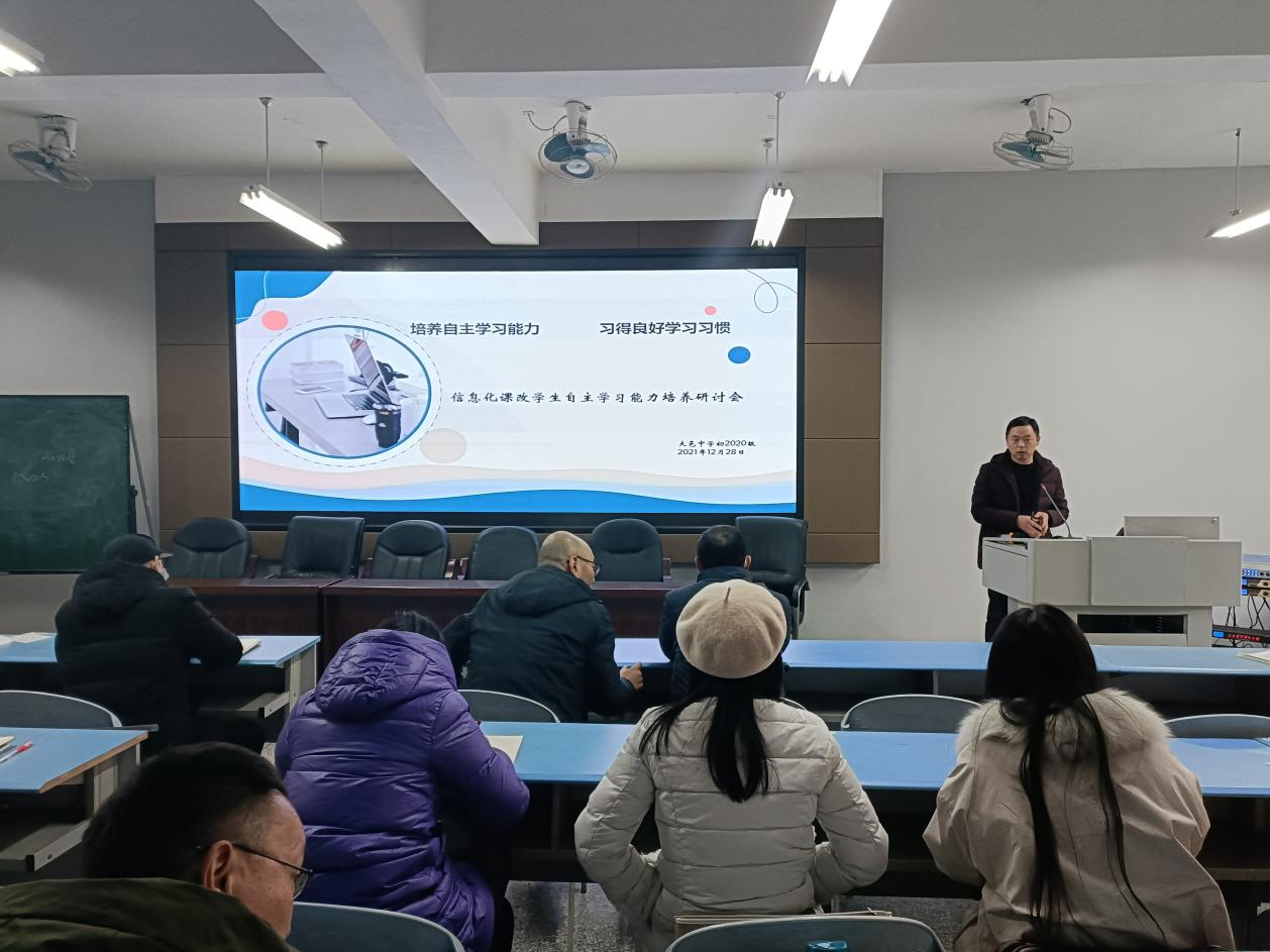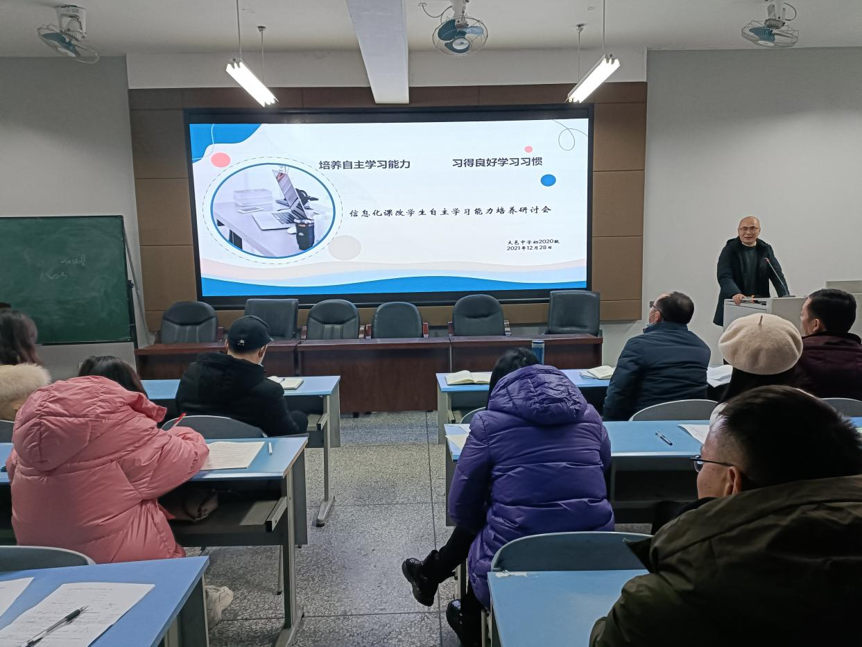 暖阳泼洒,彼时花开。为更好践行“双减”政策,助力学生充分利用网络资源,拓宽学习渠道,促进个性化学习,提高学习质量,12月23和28日,大邑中学初中部依次在初三年级、初一年级和初二年级开展以“培养学生自主学习能力,养成良好学习习惯”为主题的信息化课改阶段性研讨交流会。