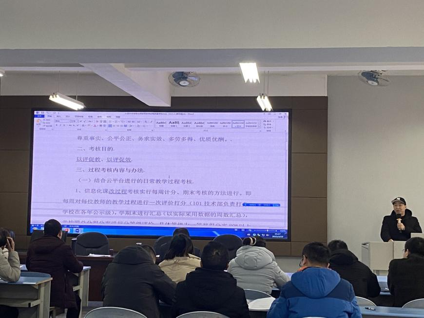 会上,教务副主任杨谟君就大邑中学初中部信息化课改班教师过程、质量考核办法进行详细的解读,为教师在信息化课改工作中的考核数据提供详细的参照要求。