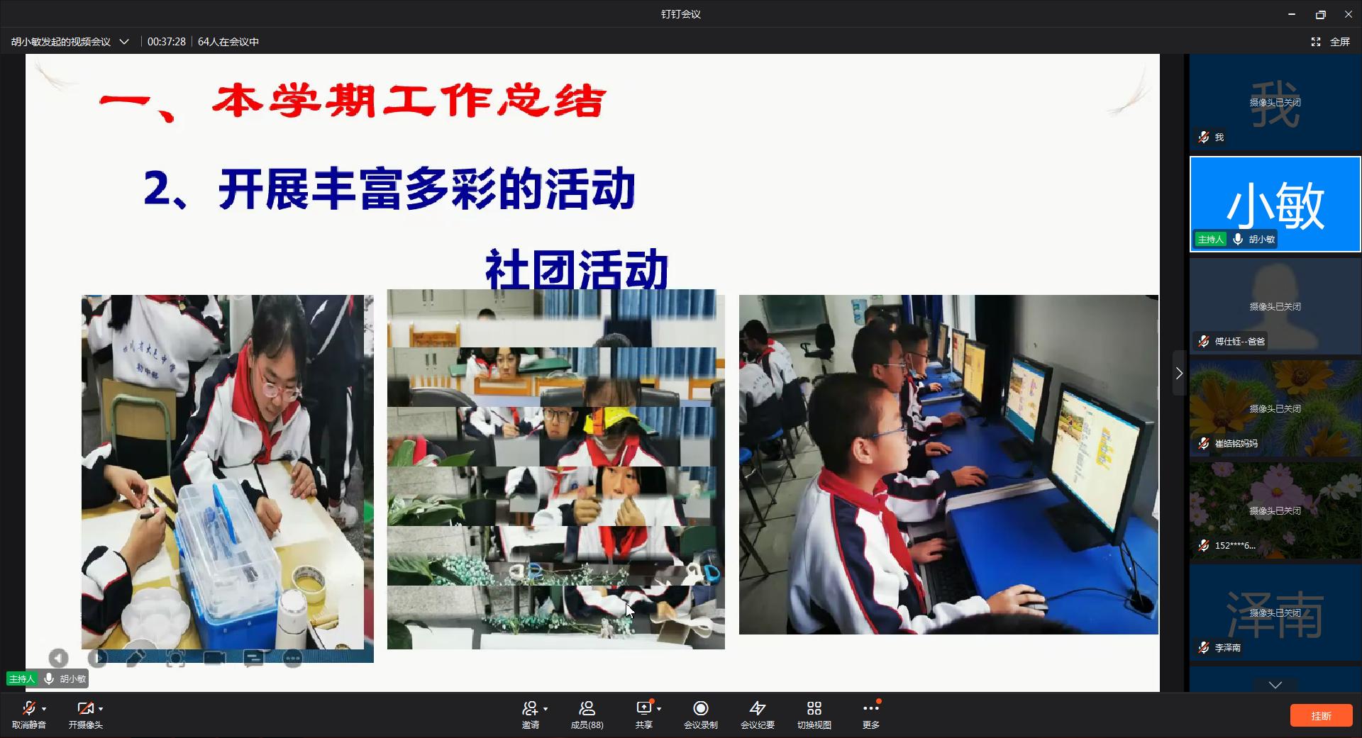 未雨绸缪,“云端”相约。会前各班主任在年级蹲点领导的统一部署下,精心构思会议主题、内容。会议在各班主任有条不紊地的调动下围绕以下四个议程展开。