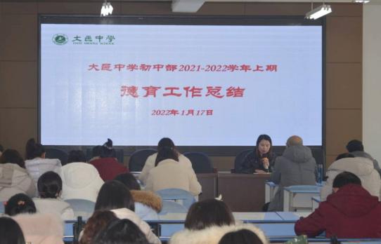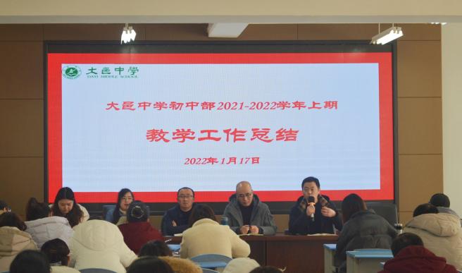 初中部校长王波作总结发言。他肯定了全体教师一学期以来的付出和取得的成绩,明确了今后努力的方向。他指出,办人民满意的学校不是一句口号。这需要我们每一位大中人用自己最大的努力,用我们最坚定的信心,把所有人的力量凝结在一起才能实现。他希望全体教师在假期里加强自我学习和提升,用最好的状态迎接2022。最后,祝福全体教师虎年吉祥!虎虎生威!