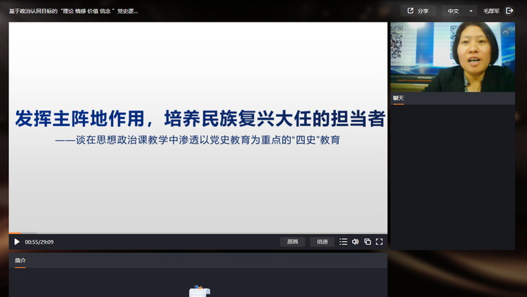 为全面贯彻党的教育方针,落实立德树人的根本任务,展示思政课程育人成果,助推政治组市级课题《高中思政课融合党史学习教育实现政治认同实践研究》研究,3月28日,我校举办了2022年春季成都市政治菜单培训第一期活动。此次活动由曾强老师主持。