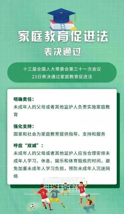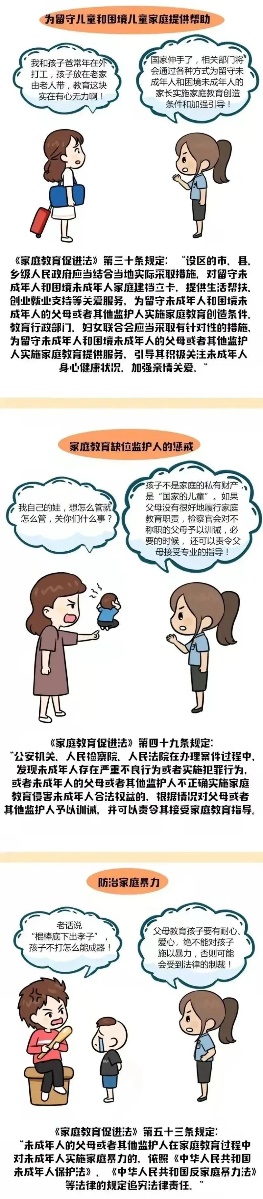 家庭是孩子的第一个课堂,家长是孩子的第一任老师。家庭教育促进法的正式实施,象征着国家、社会、学校等各个层面对家庭教育给予的支持,也用立法的方式提醒广大家长家庭教育的重要性。相信在这样的支持与家长的自身重视及教育观念的提高下,家长们能实施科学育儿,用智慧教育孩子、用爱陪伴孩子,让孩子们在学校和家庭的共同教育下健康快乐成长,成为有幸福感的人、对社会有用的人,拥有一个有价值的人生。