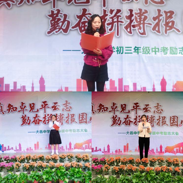 “人生因拼搏而更加壮丽,未来因奋斗而更加精彩”。大邑中学副校长、初中部负责人王波对初三学子敢想勇为,永不放弃,追求卓越的学习精神进行肯定,对家长、老师的付出表示感谢,并鼓励学生:担当报国大任、肩负复兴使命、放飞理想、坚守信念、感恩师长、勇往直前!