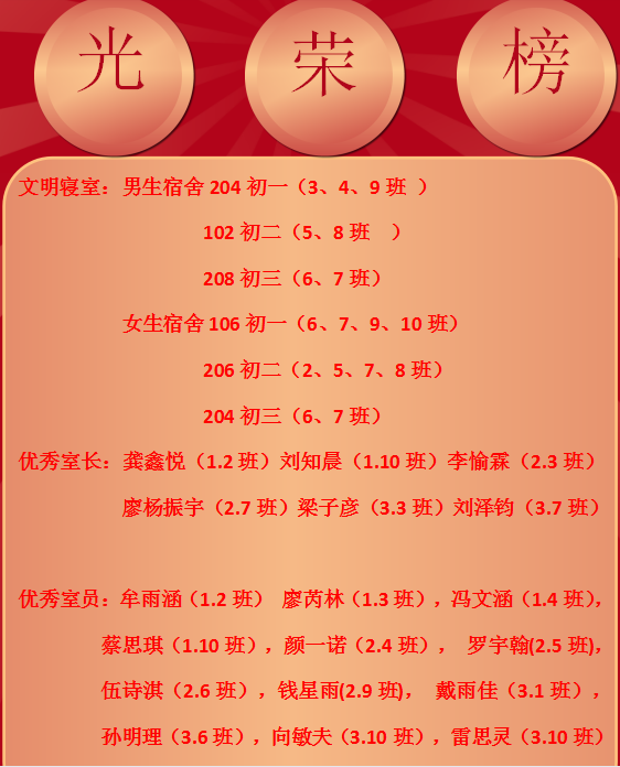 德育处对评选出的6个文明寑室、20余名优秀寑室长和室员进行表彰。