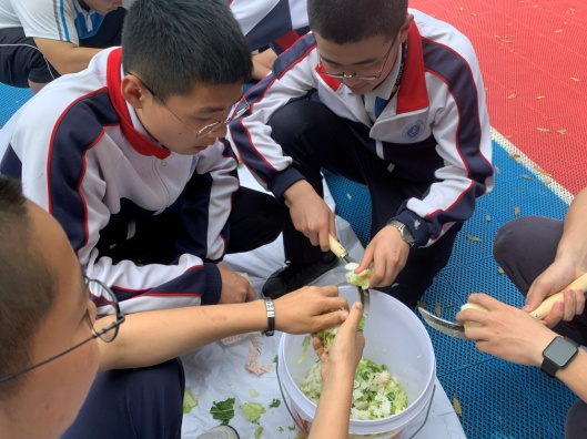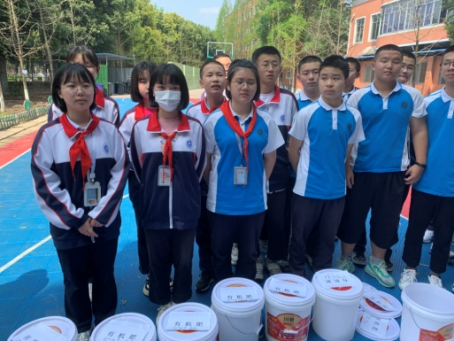 首先,同学们利用课余时间收集菜叶和剩饭等厨余垃圾,随后在老师的详细介绍和亲自示范下,了解到有机肥的制作要点以及微生物菌剂的使用比例,并在掌握要领后纷纷开始动手操作。