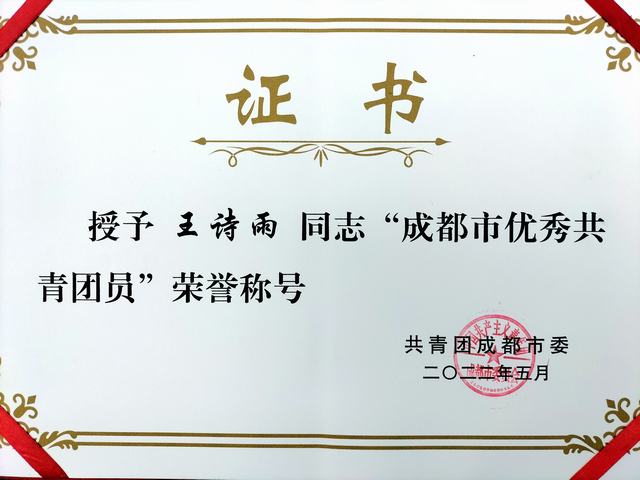 我校学生王诗雨等被评为2022年度成都市优秀共青团员