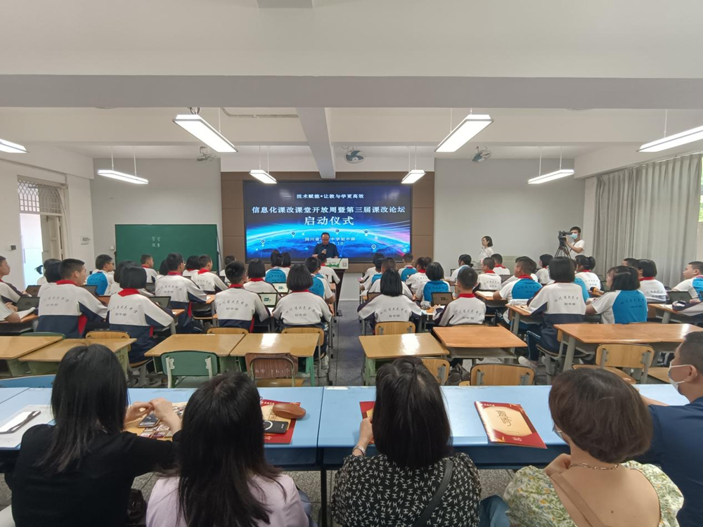 我校信息化课改班的家长代表,大邑县教育局中学教研室部分领导,全县信息化课改学校、崇州市信息化课改学校等教师代表参加了本次活动。