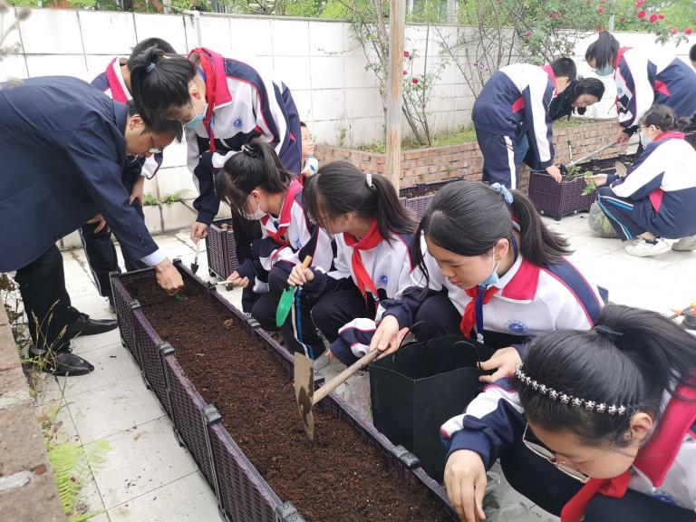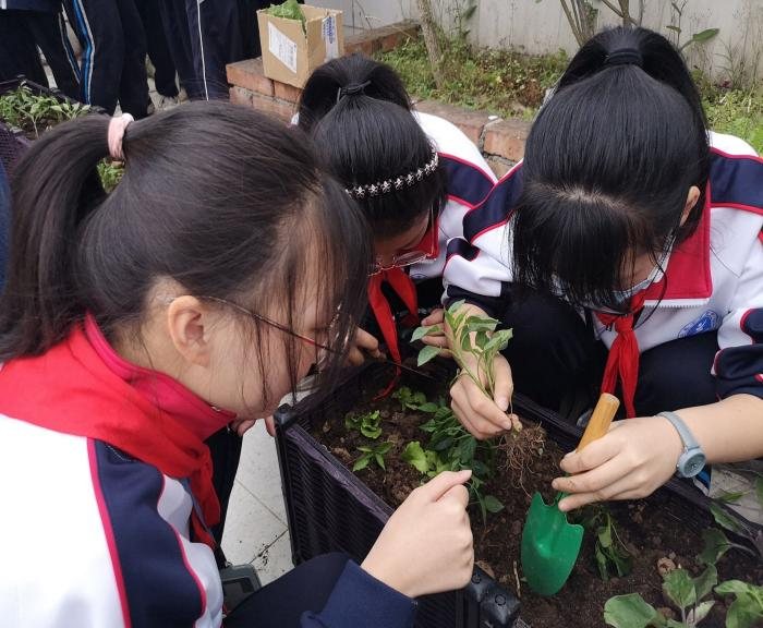 为了让学生体会到劳动带来的成就和快乐,锻炼学生动手能力,本次播种从种植箱的组装、填土,到最后的栽秧、育苗、施肥、浇水,一系列活动均由学生亲自完成。