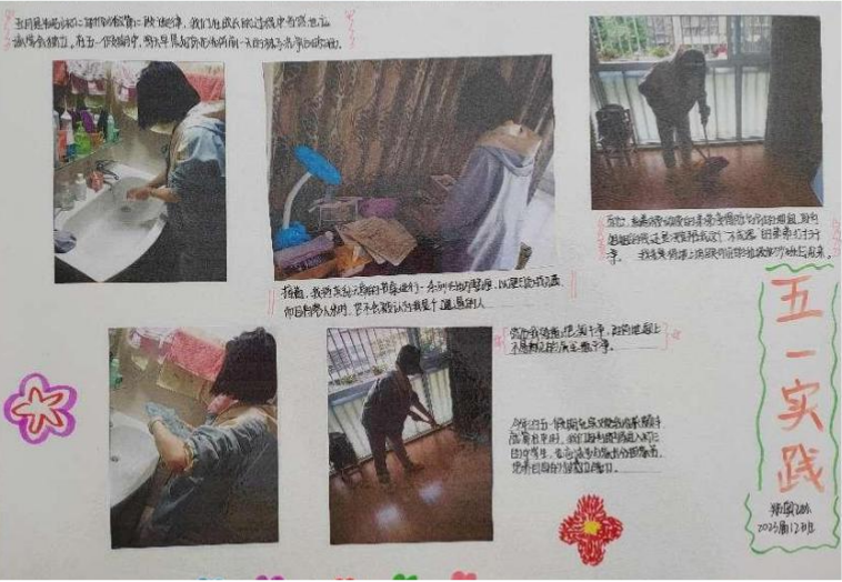 此次劳动实践活动包括家务劳动、厨艺技能、农事耕作等实际操作,以及劳动日记、劳动小报等成果展示。学生们以极大的热情投入劳动事务,各展所能,在劳动中重新发现自己、发现生活。