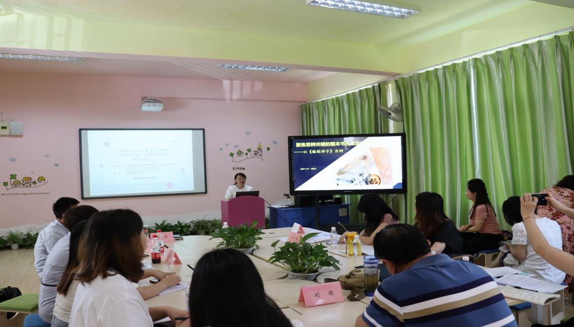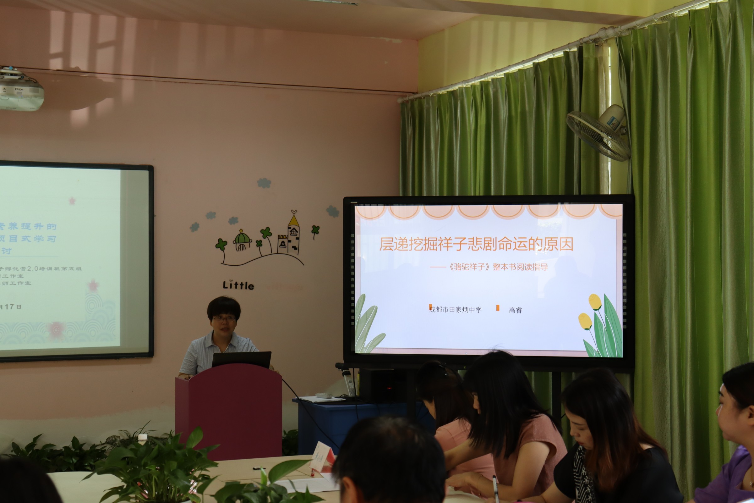 田家炳学校高睿老师和成都十七中刘春兰老师就《骆驼祥子》一书展开整本书阅读方法的交流分享。高睿老师以《探究祥子悲剧命运的原因———<骆驼祥子>整本书阅读项目式学习课型研讨》为题分享自己的教学设计,精准确定教学目标、设置阅读任务、设计阅读活动、构建阅读策略,最终让学生在《骆驼祥子》整本书阅读层次的由浅入深,思维训练的由低到高,探求祥子的悲剧原因,构建整本书阅读的经验。刘春兰老师以《聚焦思辨关键的整本书阅读总体梳理——以<骆驼祥子>为例》为题分享自己的教学课例,通过回顾梳理从生存与活动环境把握祥子命运轨迹,再思辨探究从命运的跌落缘由看个人主义的审议,最后在梳理中把握个人命运,在思辨中探究个人命运。二位老师的整本书阅读分享,为在场教师提供了项目式学习教学设计的新思路。现代课堂教学离不开信息技术的深度融合,陈川老师就信息技术与学科教学的深度融合,为老师们做专题指导。