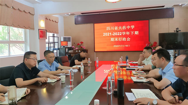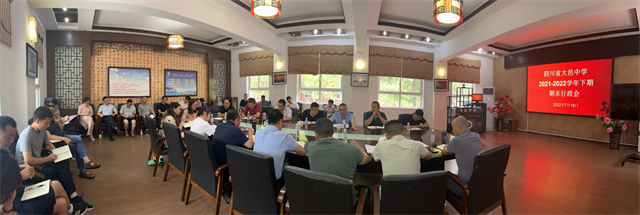 7月18日上午,我校2021-2022学年下期末行政工作会在修齐斋召开,全体行政干部参加会议。会议由校长聂长志主持,县教育局副局长、学校党委书记顾剑波出席会议。