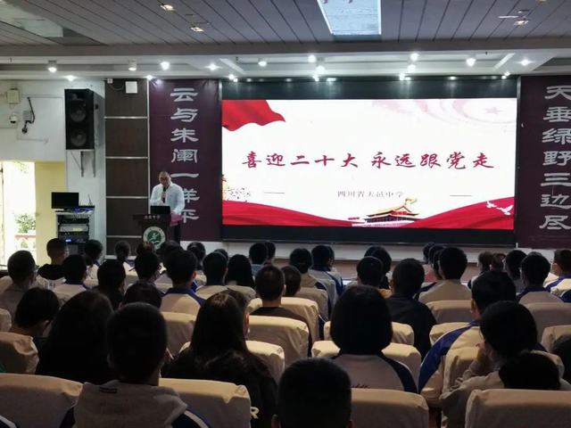 青年兴则国家兴,青年强则国家强。青年一代有理想、有本领、有担当,国家就有前途,民族就有希望。回望百年,青春向党,时值党的二十大开幕,为培养坚定理想跟党走、厚植家国情怀的社会主义建设者和接班人,四川省大邑中学于2022年10月16日在学术厅开展“喜迎二十大,永远跟党走”主题教育活动。